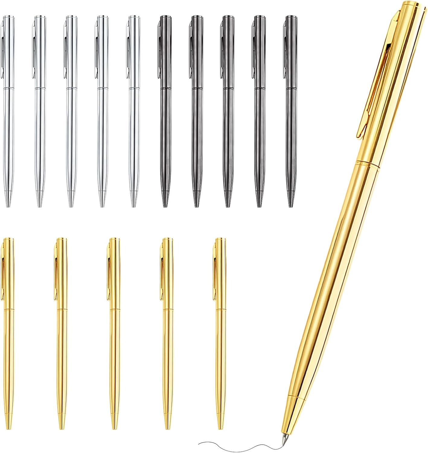- Elegant Three-Tone Set: Receive a versatile assortment of 15 premium ballpoint pens, elegantly presented in three sophisticated colors: classic Silver, Gold, and Gray to match any style or preference.