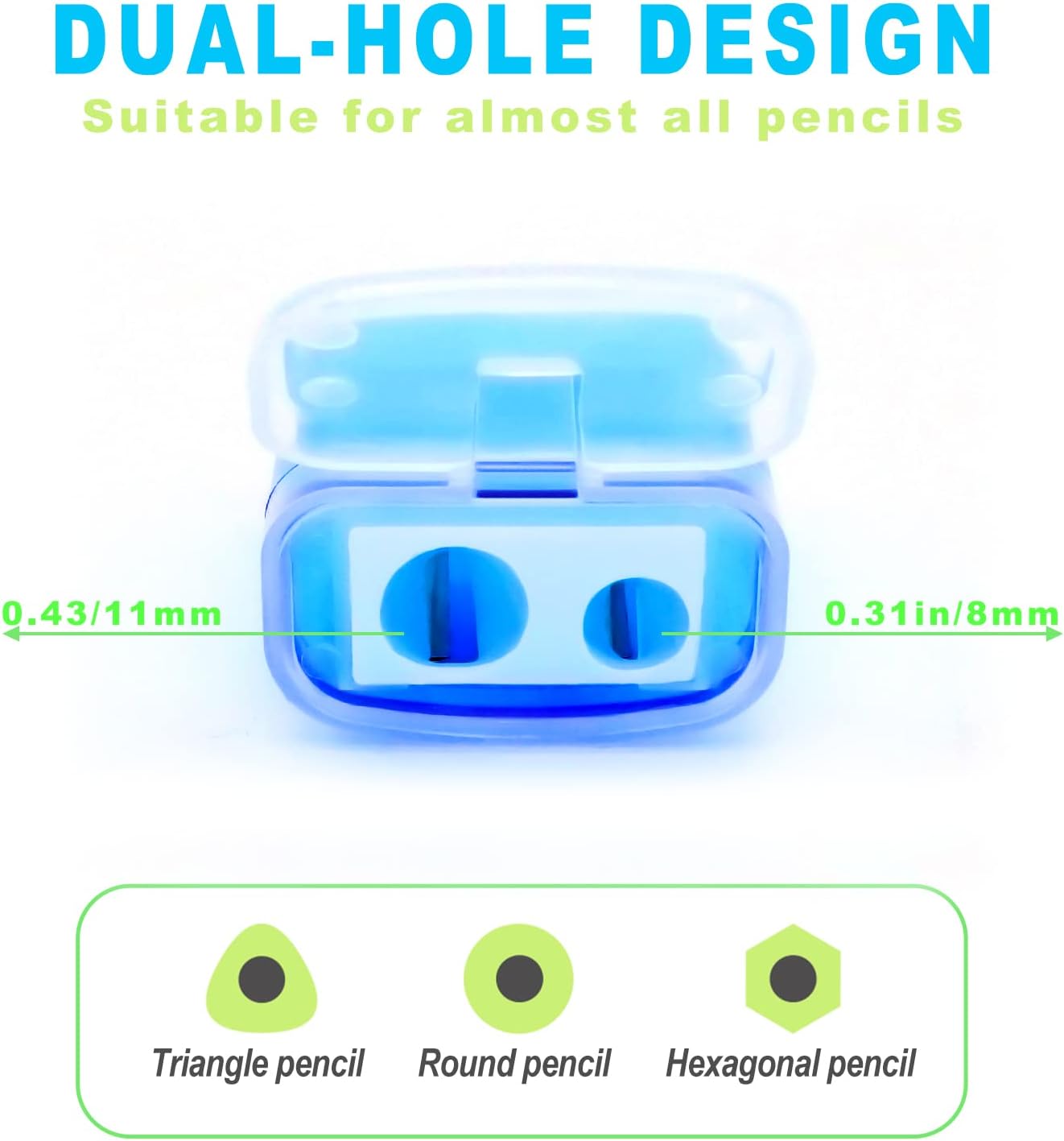 - 【DUAL HOLE DESIGN】Our Pencil sharpeners with dual holes design, two holes of different sizes, can be used to sharpen pencils of different thickness; Suitable for sharpening large and small diameter color pencils and crayons